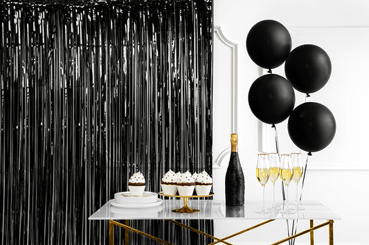 Ballītes aizkars, melns, 90 × 250 cm