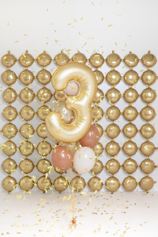 Matēts folija balons ar ciparu “3” 86cm, zelta