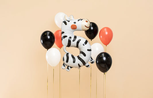 Folija balons ar ciparu 5 - Zebra, 42 × 81 cm, krāsu miksā