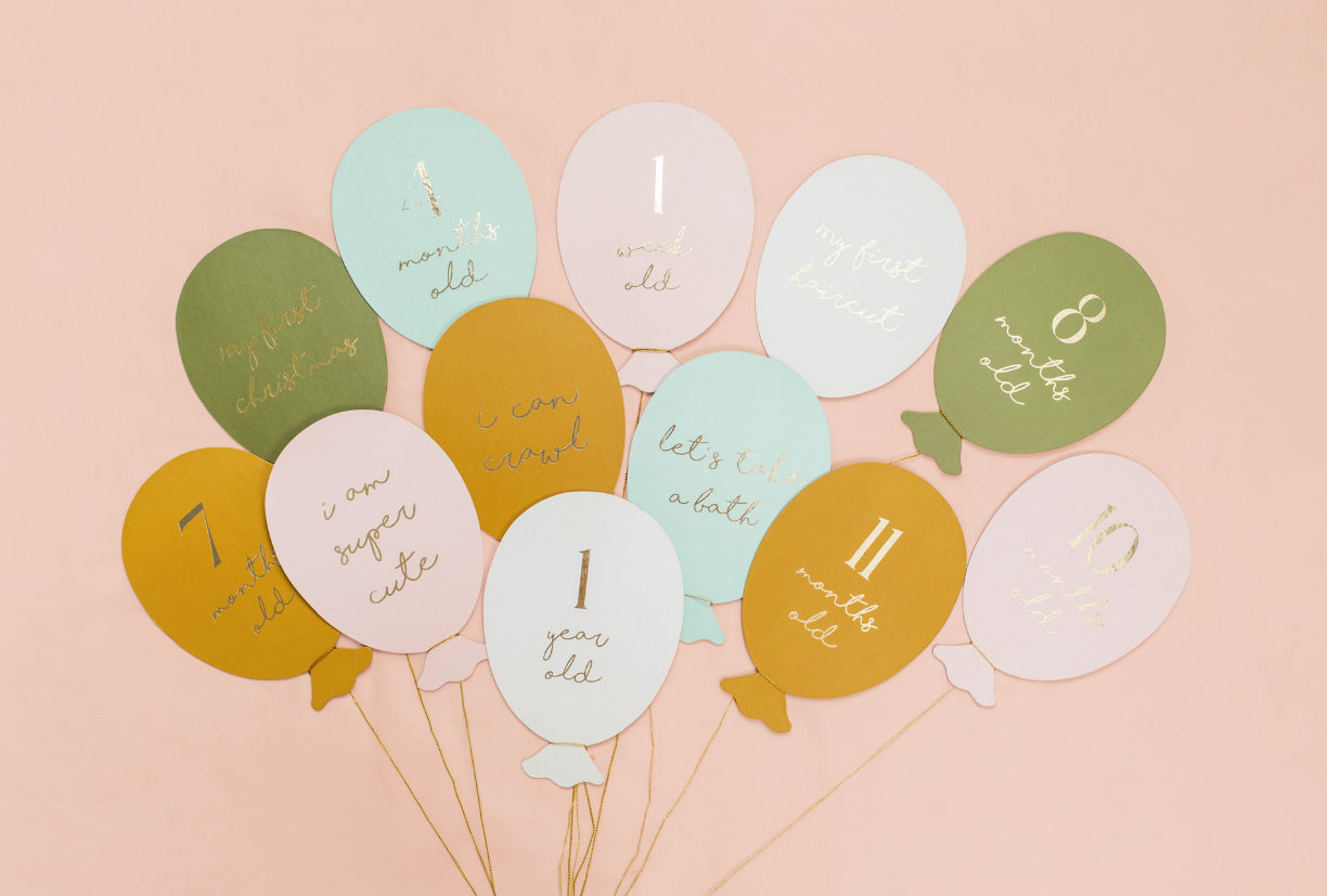 Mēnešu kartītes fotosesijām “Baloni”, krāsu mikss, 11,5 × 17 cm