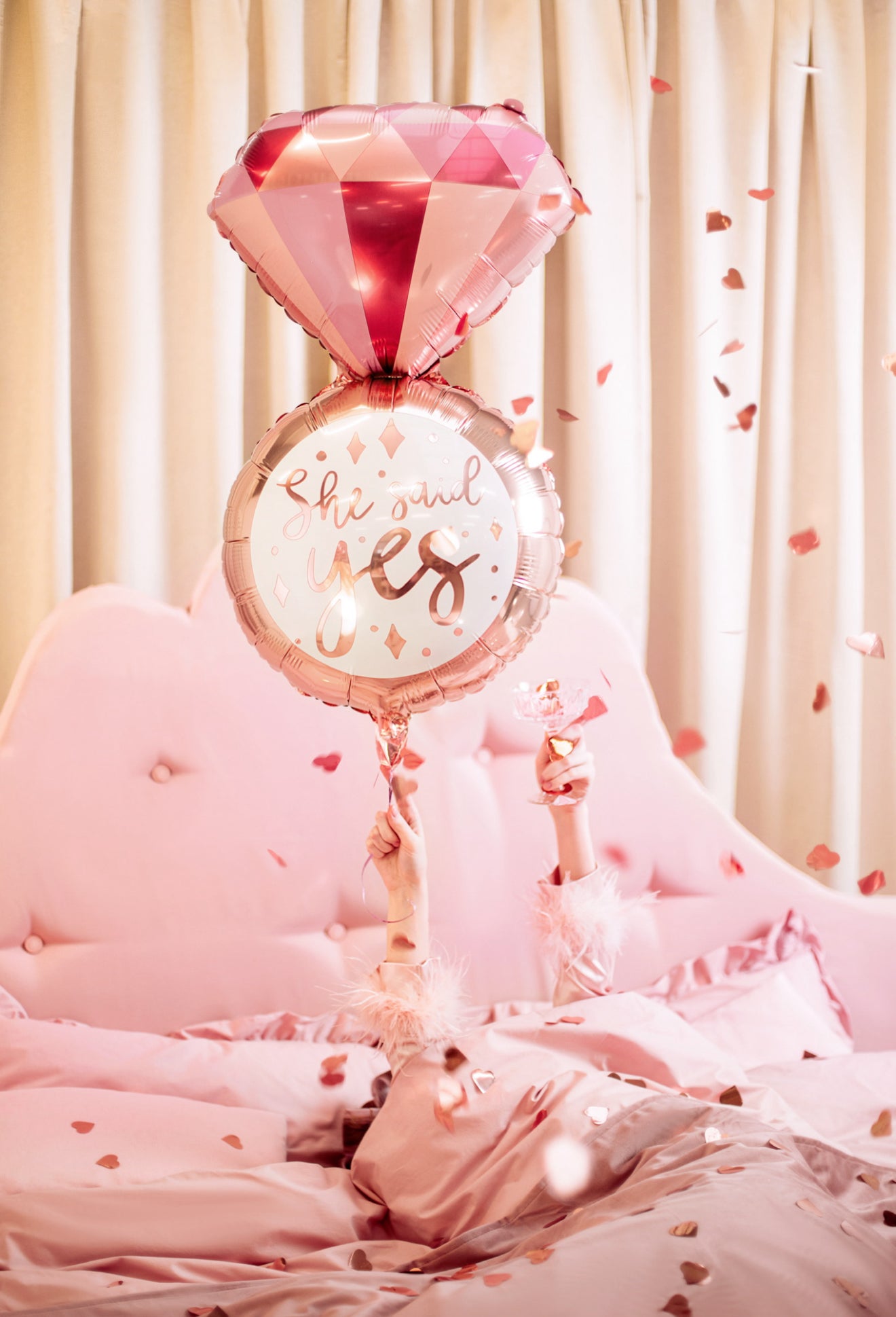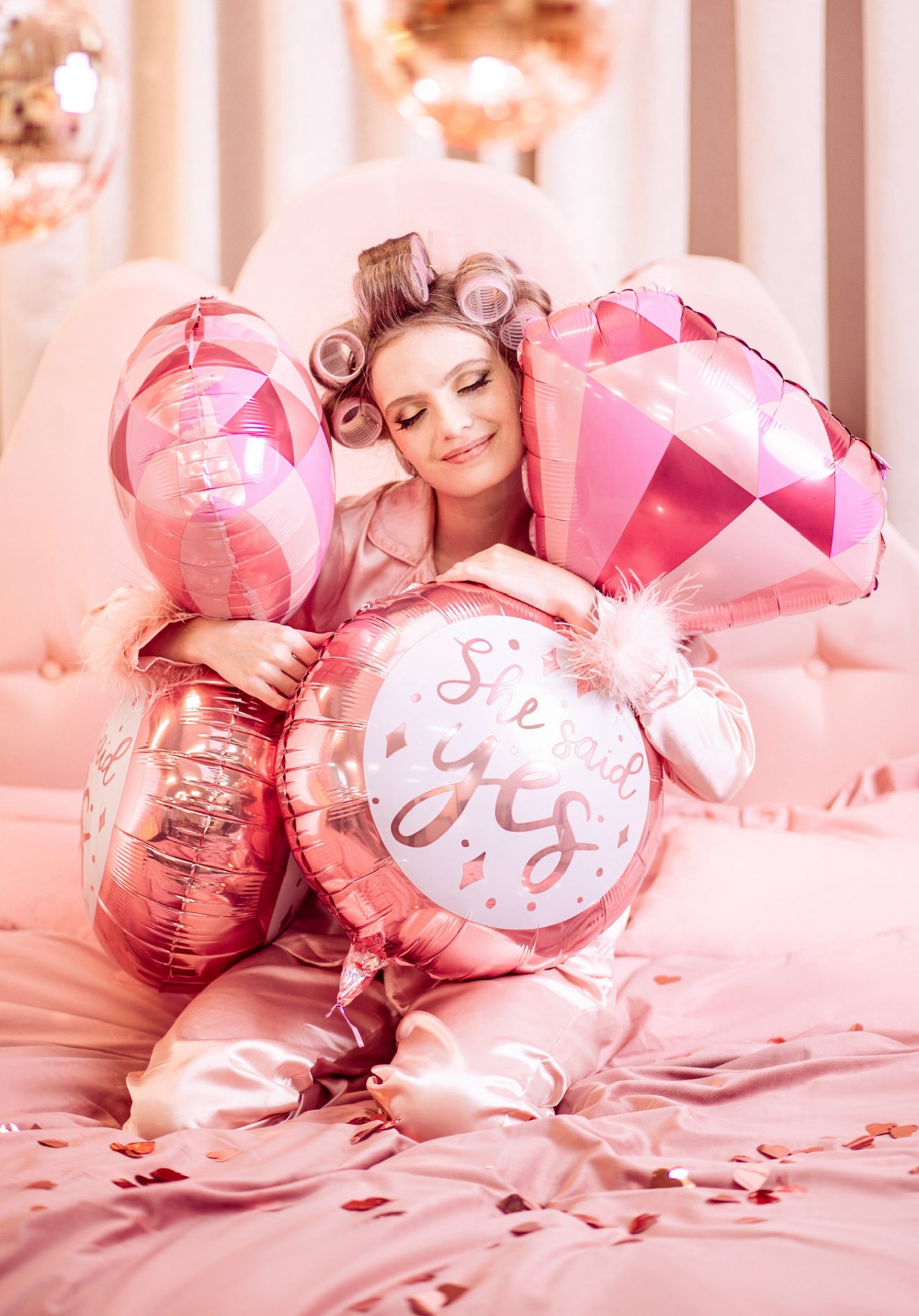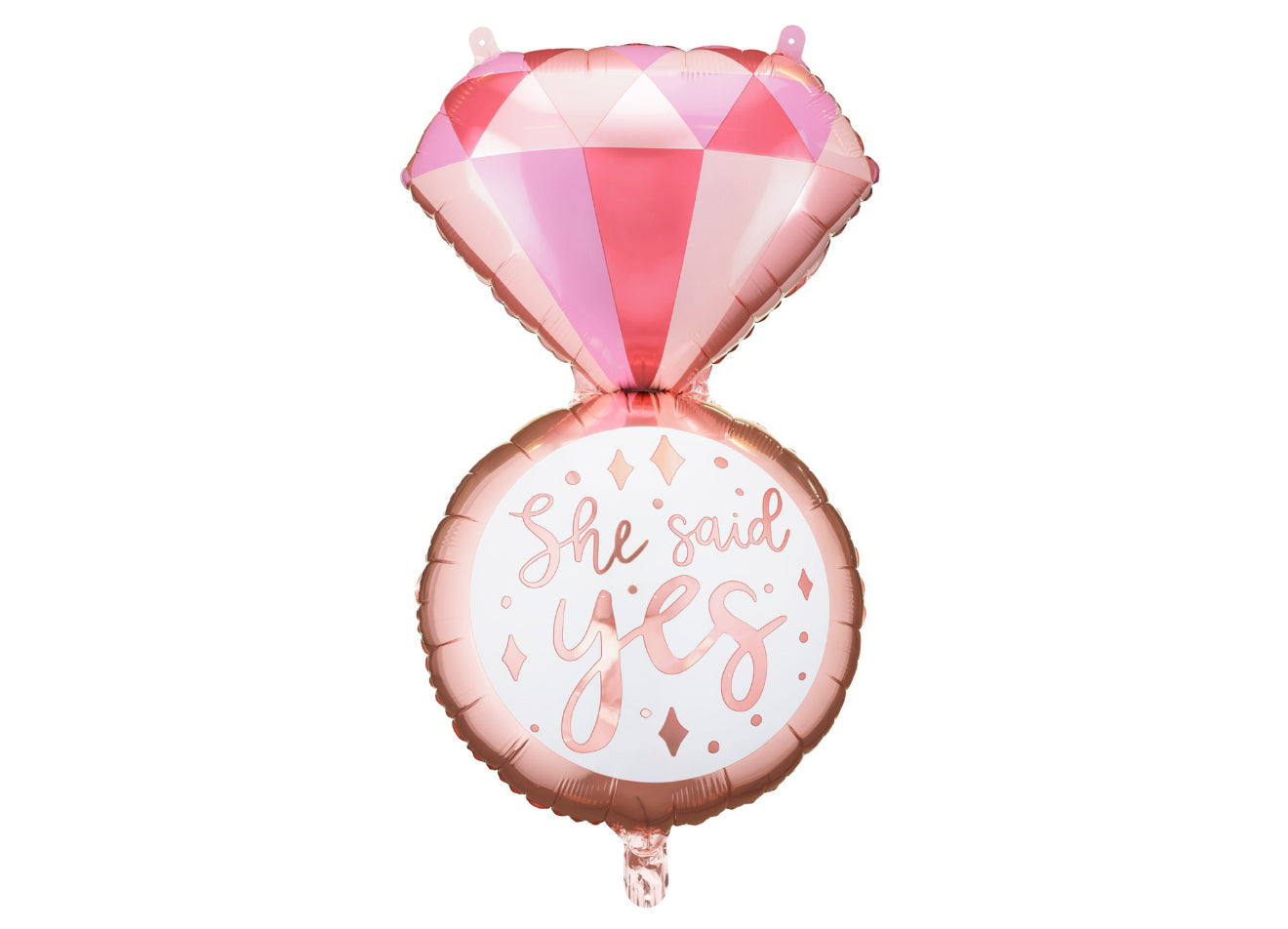 Spīdīgs folijas balons gredzena formā, krāsu miks. Izmērs pirms piepūšanas apm. 53 x 95 cm (20.5 x 37.5''), izmērs pēc piepūšanas apm. 41 x 72 cm (16 x 28''). Piemērots piepūšanai ar hēliju un gaisu.