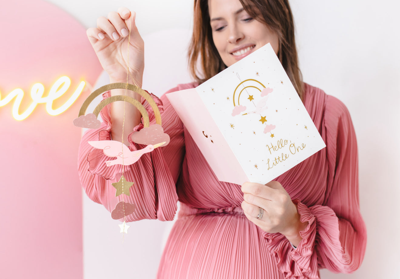Kartīte ar karājošu dekoru “Gulbis”, gaiši rozā, 14 × 20 cm