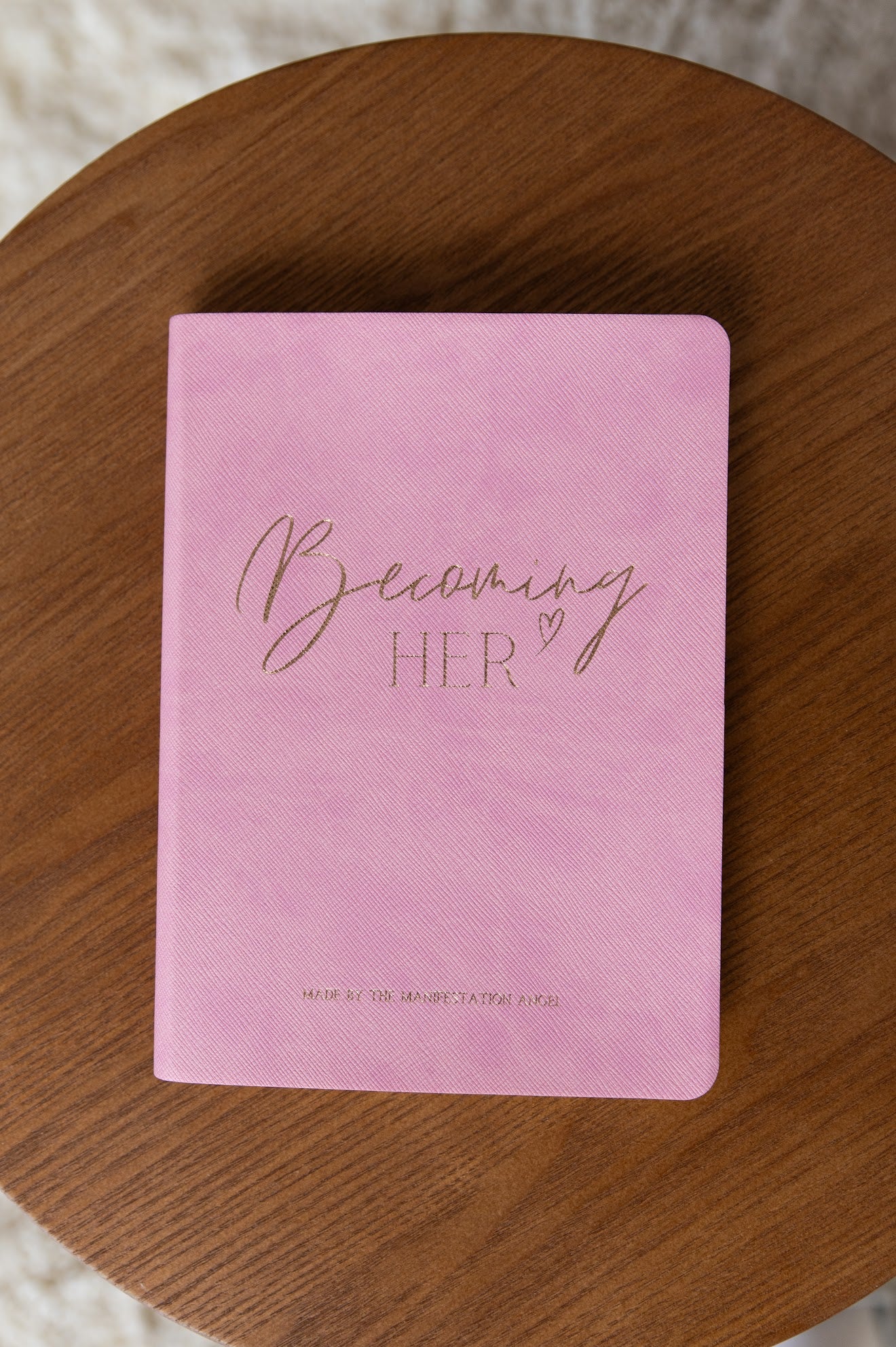 1 × BECOMING HER tumši rozā manifestācijas klade